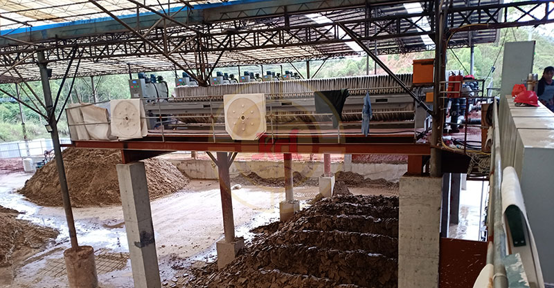 現(xiàn)場(chǎng)使用機(jī)型:廂式高壓壓濾機(jī)XMYZD1500-400m2,數(shù)量:12臺(tái)