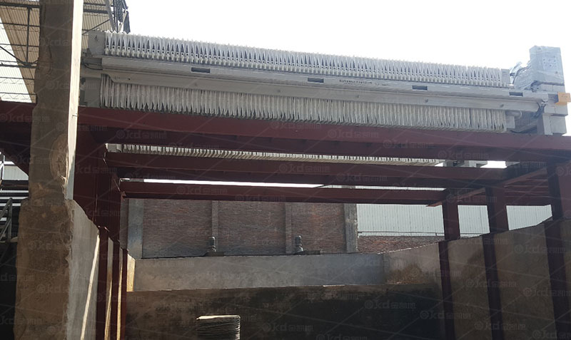 采用兩臺XMYZD1250-120pc 隔膜高壓壓濾機,對原料土、砂等按比例配置,化漿后攪拌均勻制成原漿,通過壓濾機進行壓濾脫水,壓濾后的泥餅可直接作為生產(chǎn)原料使用。
