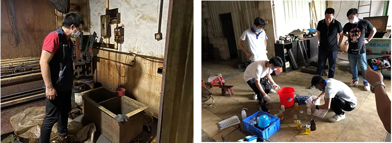 近日,橫瀝生態(tài)環(huán)境分局接群眾有獎舉報,反映位于橫瀝鎮(zhèn)神山工業(yè)城附件一家五金廠存在非法電鍍生產(chǎn)、生產(chǎn)廢水直排的違法行為。接舉報后,橫瀝生態(tài)環(huán)境分局進行了周密部署,安排工作人員到舉報地點周邊進行了多次“踩點”,弄清了被舉報企業(yè)的具體位置、周邊環(huán)境、生產(chǎn)排污情況、生產(chǎn)規(guī)律等情況后,于2020年5月7日聯(lián)合橫瀝公安分局對該工廠進行查處。