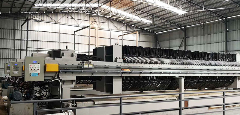 金凱地自主研制具有國際專利的廂式高壓壓濾機,機架、濾板、高壓液壓泵成套高壓專利設計,結構優化,采用優良鋼材,可靠耐用,可承受2.0Mpa壓強,設備自動化程度高,自動進料,自動翻板,自動拉板卸料,可根據物料情況對油缸壓力、過濾時間、物料干度要求及系統各部分操作單元進行實時全自動控制調節或對某個部分單元進行單獨控制;操作簡單;