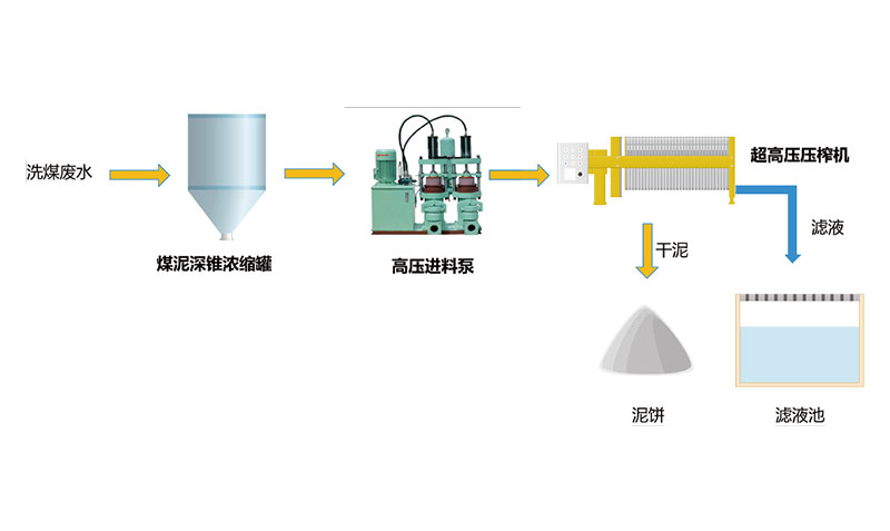 第一步:濃縮煤泥采用高壓進料泵進料,泵入高壓壓榨機中;