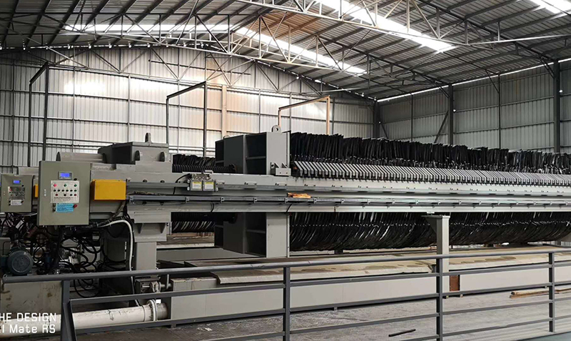 采用兩臺由金凱地壓濾機(jī)設(shè)備廠家生產(chǎn)的100mm ×1000mm 的全自動板框式隔膜壓濾機(jī)進(jìn)行污泥脫水。濾框用增強(qiáng)聚丙烯濾板,該材質(zhì)強(qiáng)度高、重量輕、耐腐蝕、耐酸堿、無毒無味。采用液壓壓緊,并用電接點(diǎn)壓力表自動保壓,確保形成濾餅的最佳條件,進(jìn)行加壓過濾。操作簡單、維修方便,并配有多種安全裝置,確保了操作人員安全。自調(diào)試運(yùn)行以來,效果良好。污泥脫水主機(jī)及其配套裝備的機(jī)械性能及工藝性能均達(dá)到并超過預(yù)期的要求。