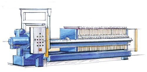 長期以來.壓濾機的自動卸餅始終是一個困擾壓濾機完全自動化的頑癥.由于某些濾料固有的特殊性.導致濾餅與濾布的粘連.卸餅難度的提高.經過長年地研發和經驗地積累.開發了多種成熟的自動卸餅機構.根據不同的物料.選配不同的自動卸餅裝置,實現了由全自動操作取代了最初的人工操作.全自動的卸餅裝置取代了最初的人工卸餅的過渡.大大減小了勞動強度.提高了工作效率.長框架卸餅裝置利用拉板時框架的振動帶動濾布的振動.從而完成快速卸餅,在處理粘性較高的污泥時.一般采用全自動刮刀裝置.通過外力幫助壓濾機卸餅.