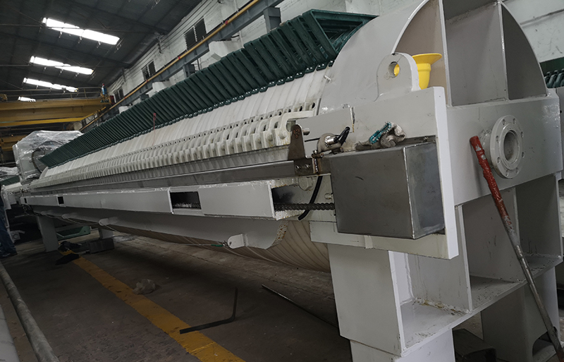 隔膜壓濾機的外觀與普通的板框過濾機類似,其框架系統的作用也類似:為液壓系統、濾板系統提供支撐。